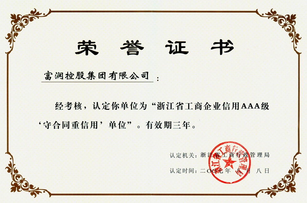 您現(xiàn)在的位置:富潤(rùn)控股集團(tuán) >> 集團(tuán)概況 >> 企業(yè)榮譽(yù)