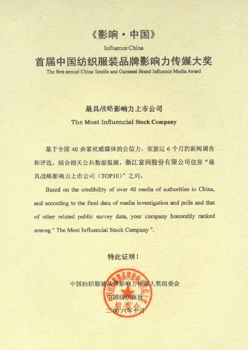 首屆中國(guó)紡織服裝品牌影響力傳媒大獎(jiǎng)